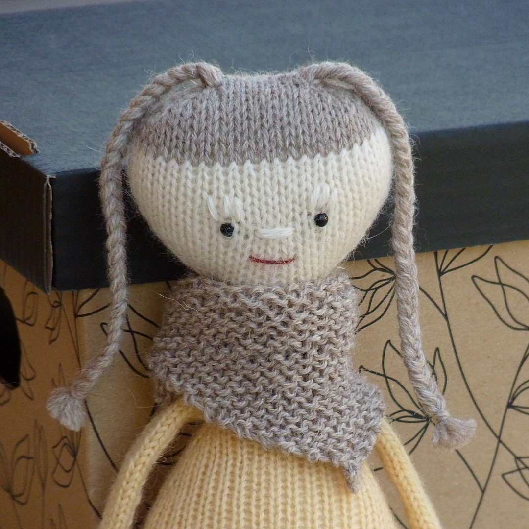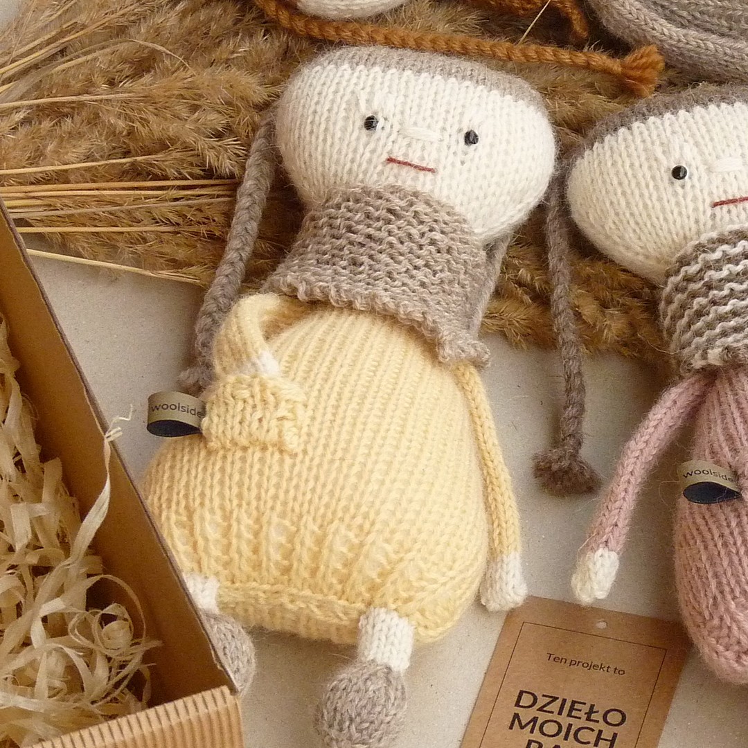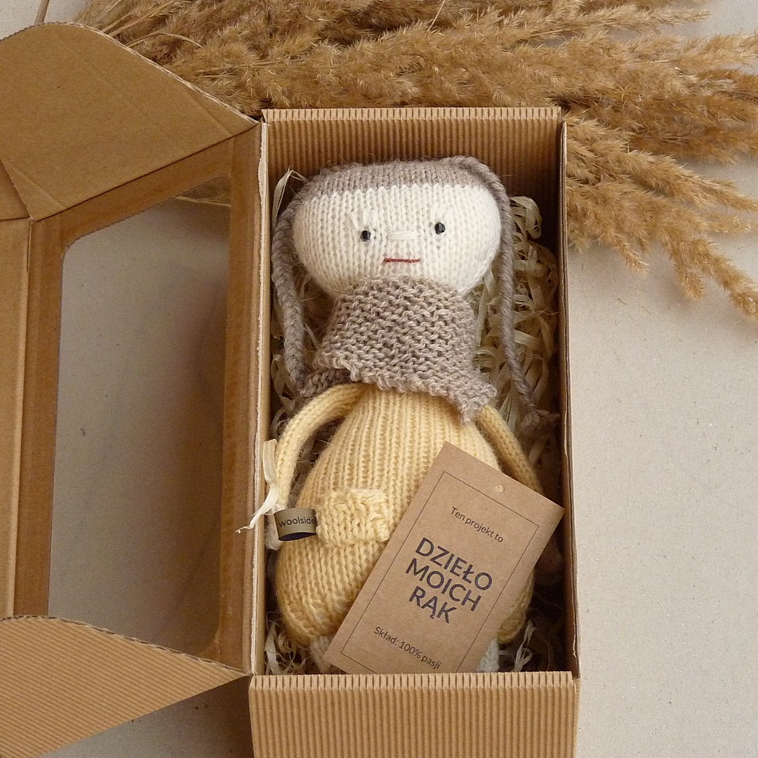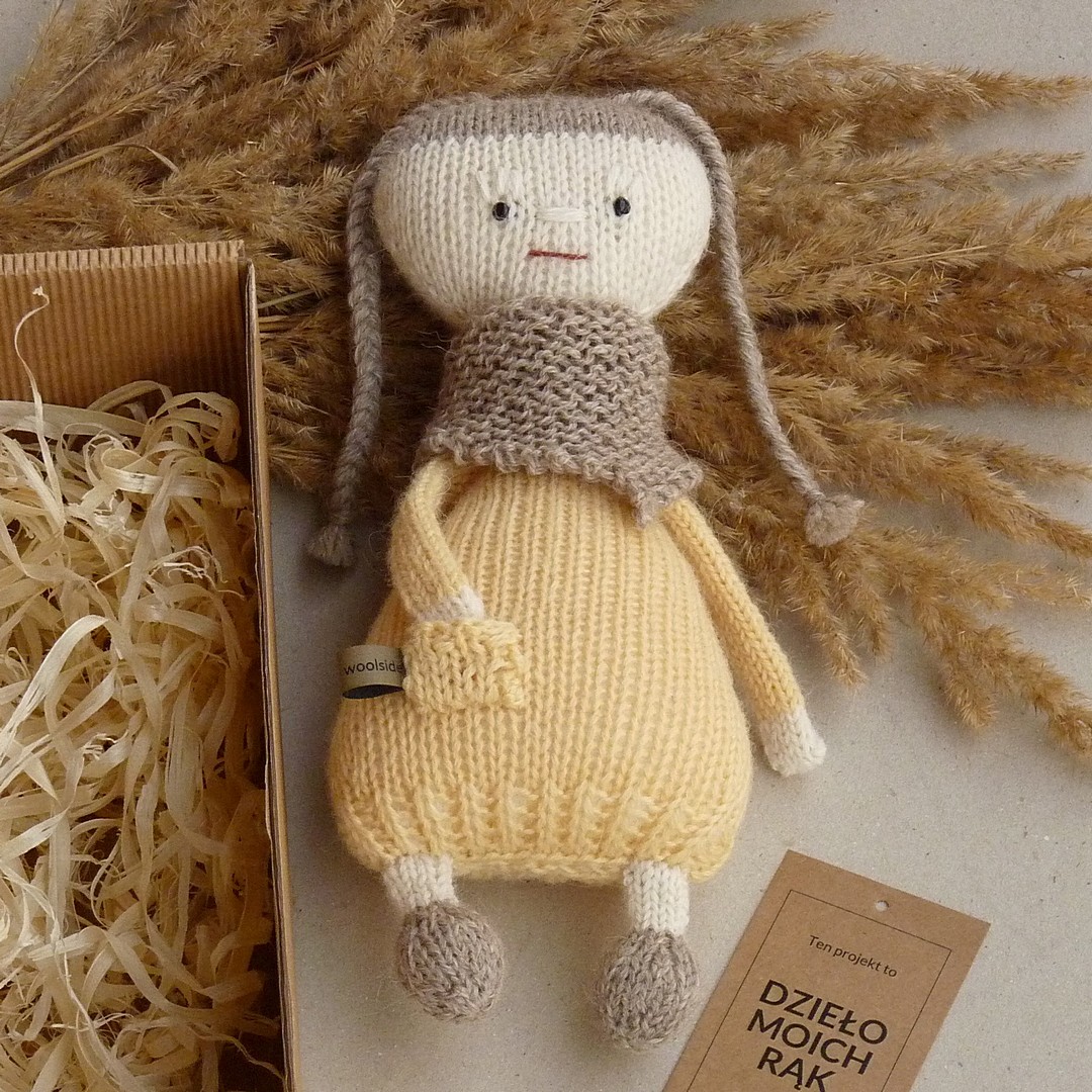 Ręcznie dziergana na drutach, pełna klasycznego uroku i prostoty lalka, która powstała w stu procentach z pasji :-)