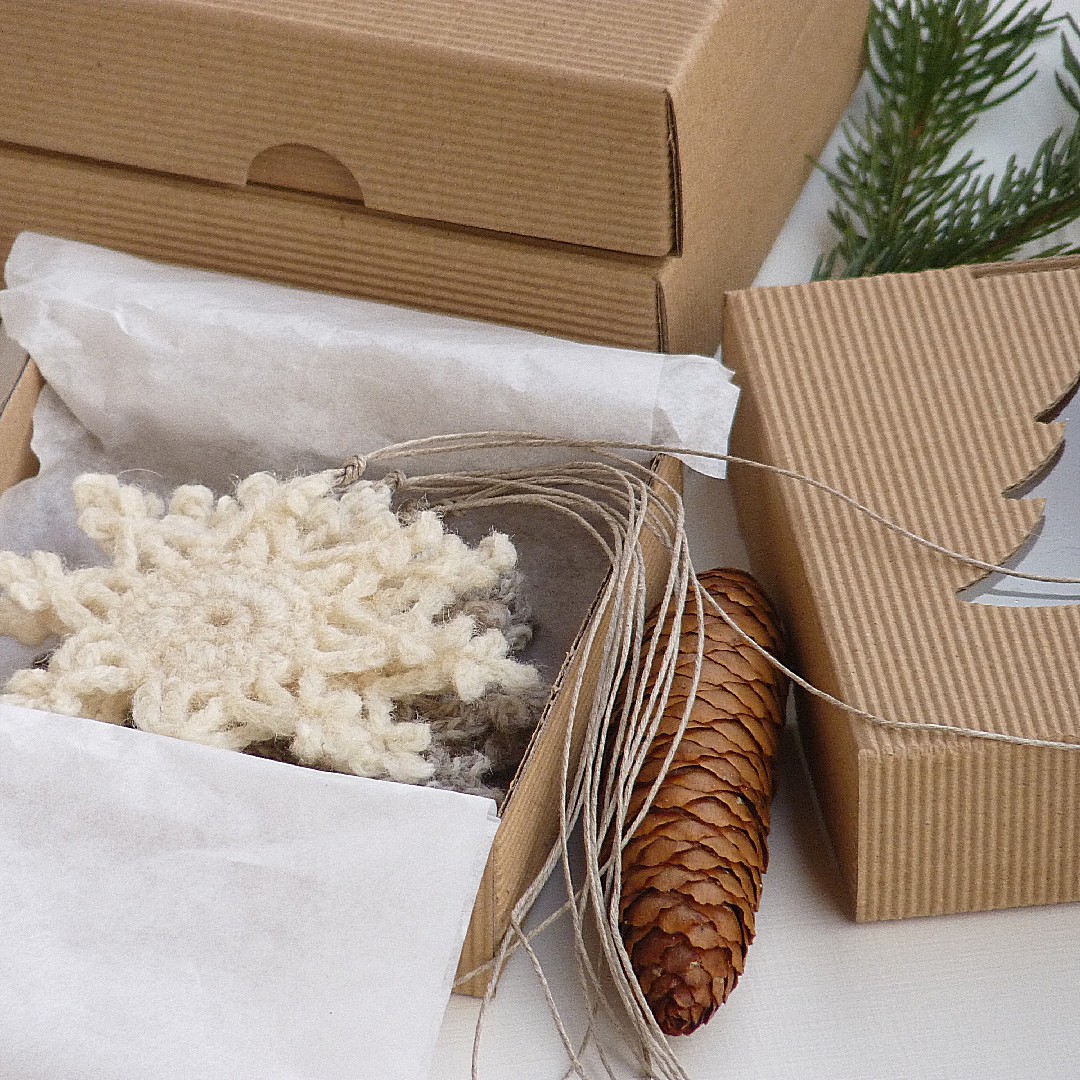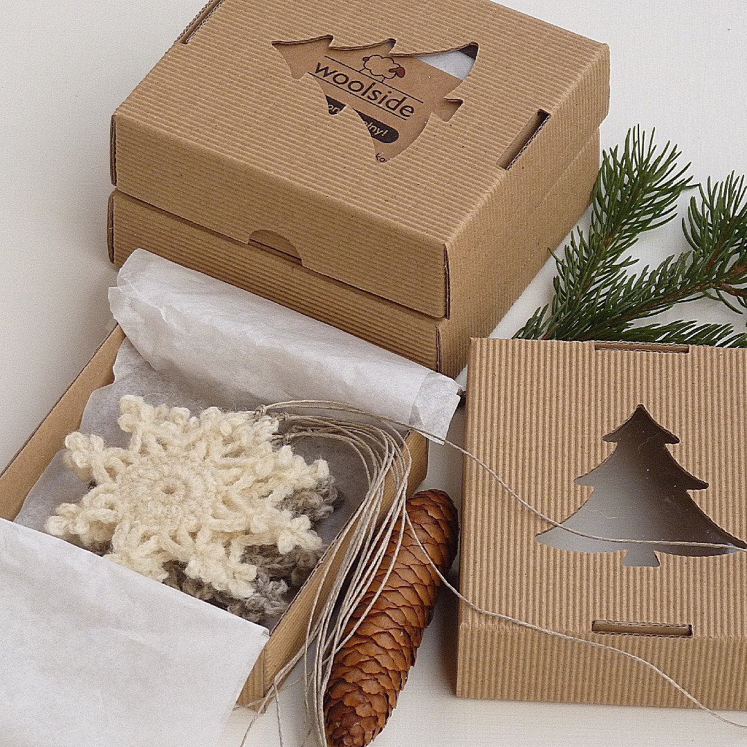 - Komplet zapakowany jest w pudełeczko z okienkiem w kształcie choinki